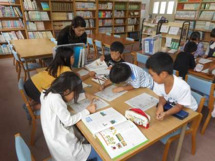 今日、3年生は図書司書の方にお越しいただいて、出前授業を行いました。「ポプラディア」という百科事典を活用して、辞典と事典の違いや事典のひき方を教えて頂きました。