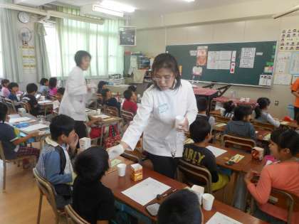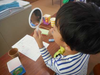 今日2年生は歯みがき指導を行いました。歯科衛生士さんにお越しいただき、歯垢が残らないような歯みがきを教えていただきました。継続して取り組んで、健康な歯を維持して欲しいです。