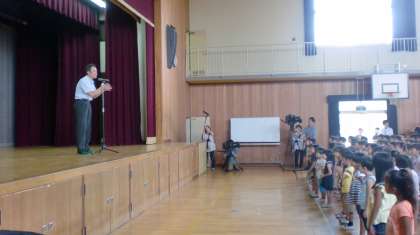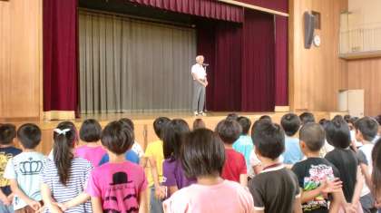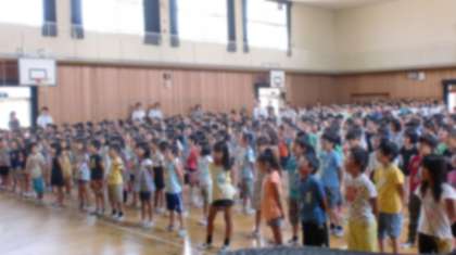 校長先生のお話に続いて、夏休みの生活についての話がありました。警察署の方もお越しいただいて、子どもたちの安全を守る合言葉『いかのおすし』についての確認もありました。校歌を元気よく歌って式を終えることができました。