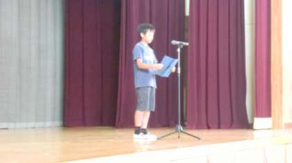 終業式の中で、児童の発表があります。はじめに5年生の二人からです。
