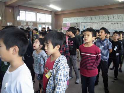 来る11月16日に住吉小学校で行われる予定の住吉区音楽交歓会と二分の一成人式に向けて初めて学年で合唱の練習を行いました。高音部と低音部に分かれ、つられないように自分のパートを歌う練習をしました。どうぞ本番を楽しみにしていてください。