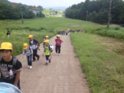 21日(月)、みんなで元気に高丸山の登山です。暑いけれどもさわやかな気候で、気持ちよく登っています。宿舎についた時も、しんどい子もなく、みんな頑張りました。さすが5年生になると、体力がついてくるもんですね。この調子で、2泊3日を乗り切ってほしいと思います。