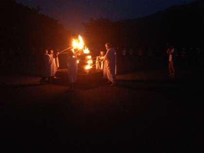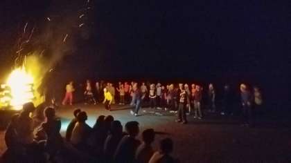 21日(月)、林間1日目の夜は、キャンプファイヤーで盛り上がりました。「楽しい出し物をして、みんなが楽しめるキャンプファイヤーをする!」というめあてをもって、キャンプファイヤー係を中心に、先生たちもいっしょに、楽しいひと時を過ごしました。