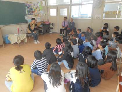 4年生は「おおきなスイカ—ルッキオとフリフリ—」、「牛方とやまんば」、「エパミナンダス」のお話を聞きました。長いお話もありましたが、物語に吸い込まれるように子どもたちは聞いていました。