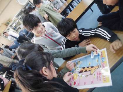 二時間目は、賞味期限や材料成分表示などについて学習しました。食品に入っている塩分や資質についてのクイズにもグループで挑戦しました。最後にお土産もいただきました。