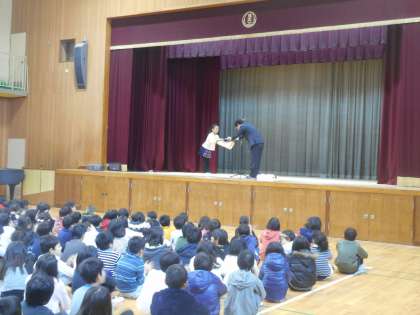 児童朝会での表彰の続き
