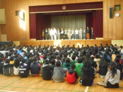 今朝のフレンド集会は給食委員会の発表でした。給食室への片づけの仕方を劇を伝えたり、クイズで給食について伝えてくれたりしました。明日から給食週間が始まります。日頃の給食に感謝の気持ちをもって過ごしてほしいと思います。