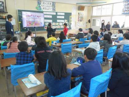 4年生は保健と外国語活動の参観を行いました。保健の学習は「変化してきたわたしの体」として、身長や体重は年齢とともにどのように変化するのか学習しました。また、外国語活動では、自分が欲しい物やあげる物を英語を使ってコミュニケーションをはかりました。