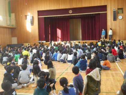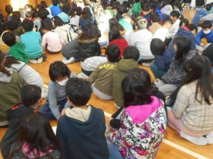 今朝はフレンド集会がありました。今日は舞台の間を通るのは何かをあてるクイズでした。久しぶりの集会でした。久しぶりに異学年で楽しく交流しました。