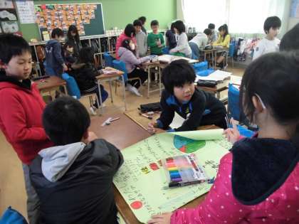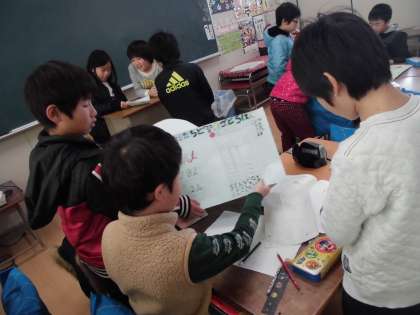 今、国語科で「報告します、みんなの生活」という単元を学習しています。各グループでテーマを決めてアンケートを取りそれを集計して、協力してグラフや表に表します。その資料を基に発表原稿を練り、グループごとに発表会を行う予定にしています。