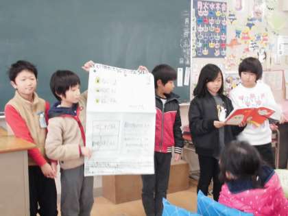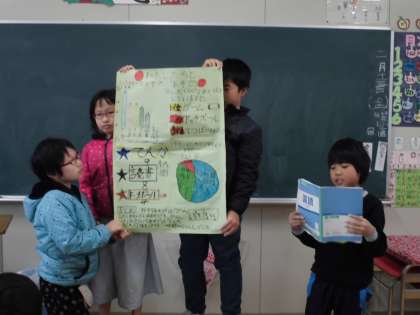 今まで国語の時間にグループで協力して取り組んできた「みんなの生活」について今日は、発表会を行いました。協力して、どのグループもがんばって発表することができました。