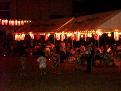 昨日はお天気にハラハラさせられましたが、今日は良いお天気で盆踊りを迎えました。人出も増え、たくさんの方々が来られて、昨日以上ににぎやかになりました。