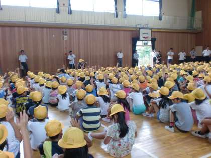 ハンカチで口を押えている児童が少なかったので、校長先生が煙の怖さを話されていました。真剣に行動して、集まれたのはよかったです。日ごろからの積み重ねが大事ですね。
