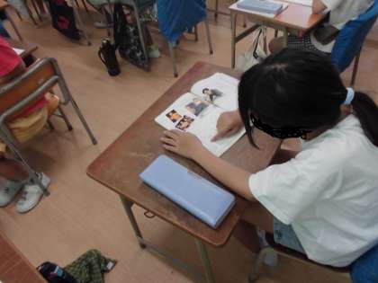 国語の学習で、説明文の単元です。先生のP模範音読を聞きながら、教科書の文章を追っていました。