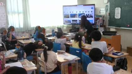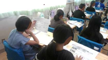 社会科の学習です。自然災害に備える社会の取り組みについて学んでいました。今日は、津波などに備えた防波堤や水門などについてプリントにまとめていました。