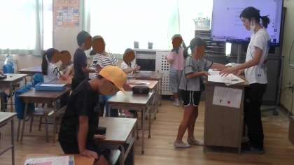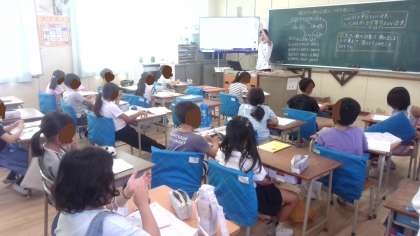 算数の学習です。大きい数について学習していました。大きい数を間違わずに読めるように単位カードを使っていました。授業の終わりにノートを集めていました。必要なことがしっかりノートできているかを確認します。