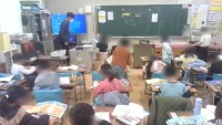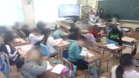 家庭科の学習で裁縫について意見交流をしていました。生活の中で裁縫が活用できる場面を発表しあっていました。