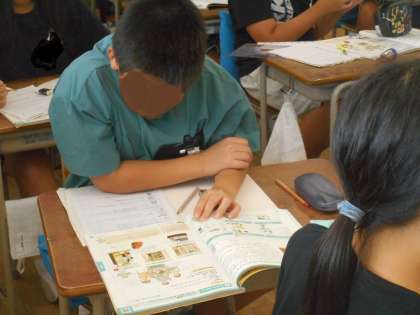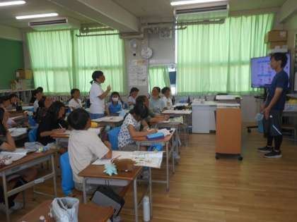 家庭科の学習で裁縫について意見交流をしていました。生活の中で裁縫が活用できる場面を発表しあっていました。