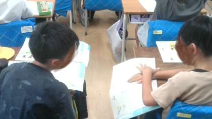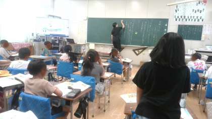 道徳学習です。「学級しょうかい」という課題文を読んで、その中の出来事や登場人物の気持ちを考えることから、すばらしい学級ってどんな学級なのかを考えます。班や隣同士などで意見交流したり、友だちの発表を聞いたりする中で考えていきます。