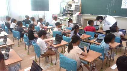 ICT支援員に来ていただいて、タブレットドリルの使い方の習熟に励みました。わからいところは支援員さんが丁寧に教えてくださるので、子どもたちは、すぐに使いこなしているようでした。