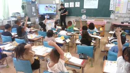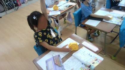 算数の学習です。時計の読み方の学習をしていました。時計の模型や動画などを活用して、視覚的にとらえやすくわかりやすく進めています。