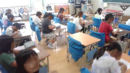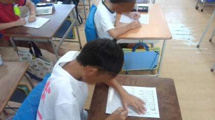 国語の学習です。漢字テストに取り組んでいました。止め、はね、払いなどに注意して書いていました。