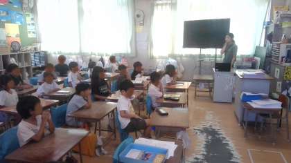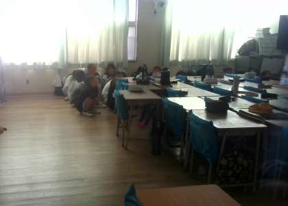 訓練が始まる前に、不審者侵入の際の合図の放送や避難行動などについて各学級で子どもたちと確認して訓練に臨みました。合図の放送があった後、どの学級でも教室内での避難行動が静かに行われていました。