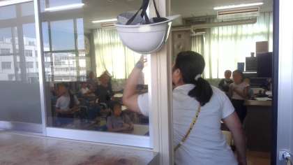 今日は、校内に不審者が侵入したという想定で避難訓練をしました。