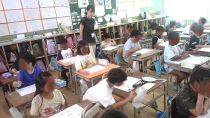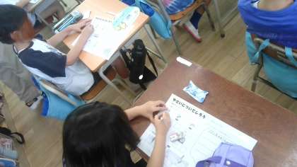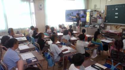他校から栄養教諭に来ていただいて栄養指導を受けました。今日は、野菜についての学習でした。