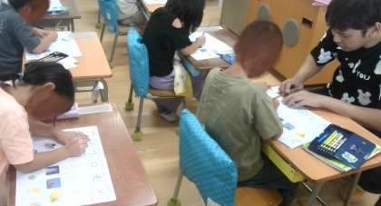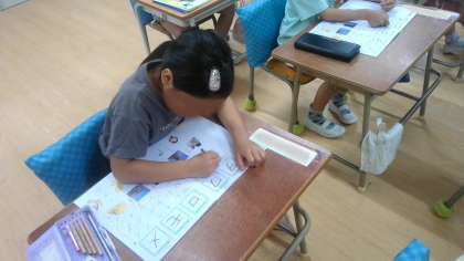 国語の学習です。カタカナの学習で、カタカナノートを使って練習していました。この時間で「ア」から「ヲ」まで一通り練習し終えました。