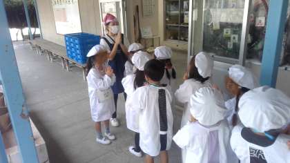 調理員さんへの感謝の気持ちを込めて「いただきます。」と言ってから給食を受け取ります。