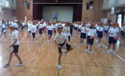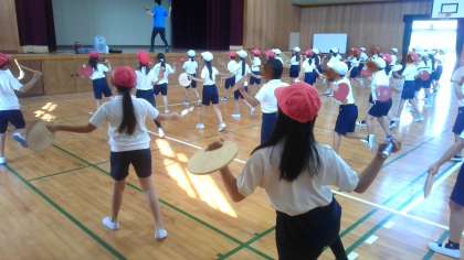 運動会練習で、団体演技の練習に熱が入っていました。難しい動きのところを何度も繰り返し練習していました。