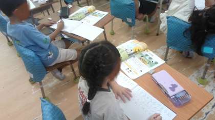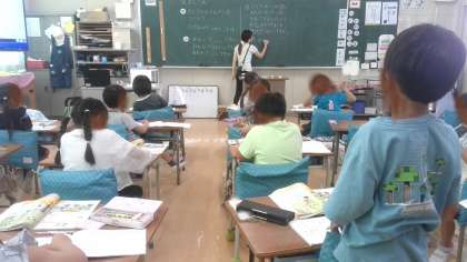 算数の学習で、たし算の問題作りに挑戦していました。それぞれが作った問題がどんな式になるか、みんなで考えていました。