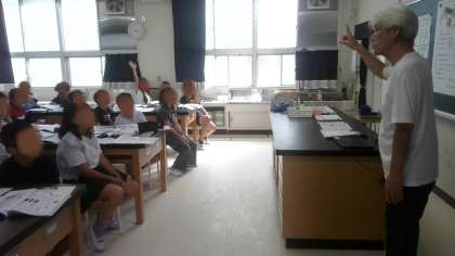 理科の学習です。流れる水のはたらきについて、川が岸を侵食していく様子をプリントにまとめようとしていました。これまで学習してきたことや、動画や教科書の資料を参考に考えていました。