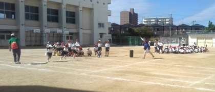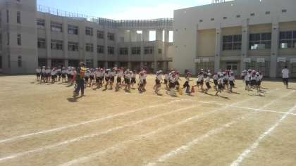 運動会練習の様子です。今日は、個人競技の徒競走の練習でした。入場から退場までの一通りの動きを練習した後、実際に走っていました。練習ですが、子どもたちは一所懸命走って、周りの子も懸命に応援していました。