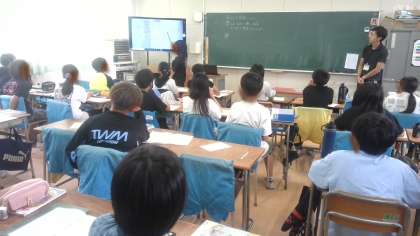 算数で「比」の学習でした。40:120を簡単な比に直すやり方を考え、みんなに発表していました。友だちの発表と自分のやり方を比較しながらやりやすい方法をつかんでいました。みんなで比を簡単にするとは(日の数をできるだけ簡単な整数の同じ値の比にすること)ということと、簡単にするやり方を確認して今日のまとめをしていました。