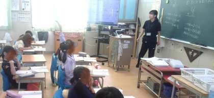 算数の学習です。「72×3」の繰り上がりのあるかけ算のひっ算に仕方を考えていました。自分の考え方をみんなの前で発表しあい、やりやすい方法を考えていました。