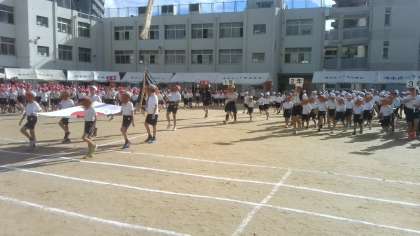 今日と明日、運動会に向けた全体練習を予定しています。今日は、開会し引きと閉会式を一通り流しました。そのなかで、子どもたちは、自分が立つ位置や動きなど、大まかなことをつかんで練習しました。