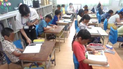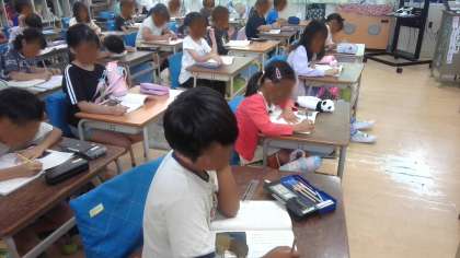 国語の学習です。物語文「サーカスのライオン」の学習で、主人公のライオン「ジンザ」と少年の会話の場面を読み、ジンザの言ったことや思ったこと、少年の言ったことや思ったことを見つけ出すことをしていました。