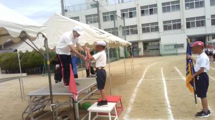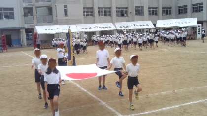 今日は運動会全体練習二日目です。開会式と閉会式を通しでやる予定でしたが、途中の降雨で校歌斉唱や終わりの体操などを省いた形でしかできませんでした。それでも、得点発表や優勝旗等の授与などを練習し、本番に備えることができました。