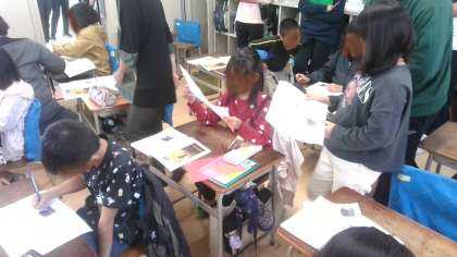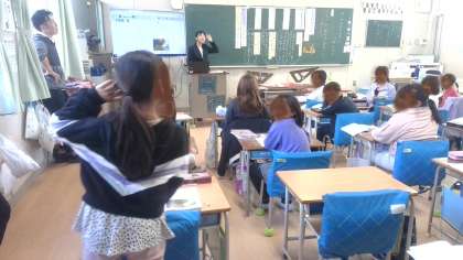 5時限目は、国語の授業研究会をしました。3年生の「サーカスのライオン」について、主人公じんざの様子が変化した原因を探っていきます。じんざと男の子とがどんな交流をしていたかを読み取らせるための指導の工夫を考えました。