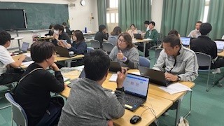 放課後、討議会をしました。指導の工夫はもちろん、授業規律や発問の仕方などについても活発に意見交流しました。講師先生の指導も受け、明日の授業につなげていきます。
