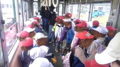 1年生が遠足に出かけました。行先は、浜寺公園です。阪堺線の貸し切り電車で行きました。