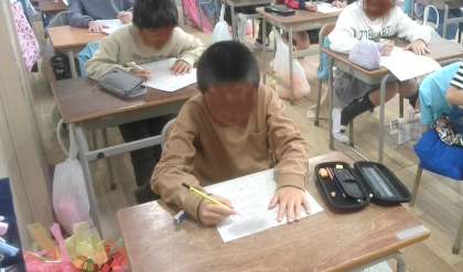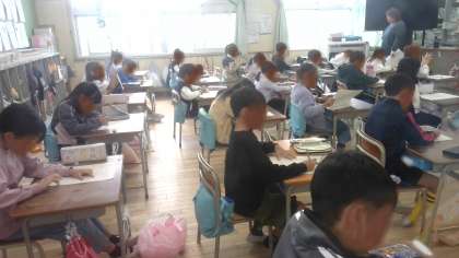算数の学習で、かけ算のテストに取り組んでいました。みんながんばって!!