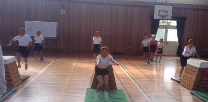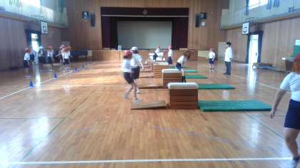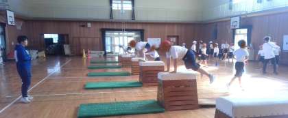 体育で跳び箱運動をしていました。今日の学習は「きれいな開脚とびをしよう」でした。
