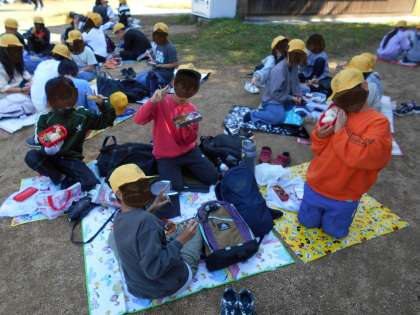 しっかり体を動かした後のお弁当はさらにおいしかったようですね。みんないい笑顔でお食べていました。