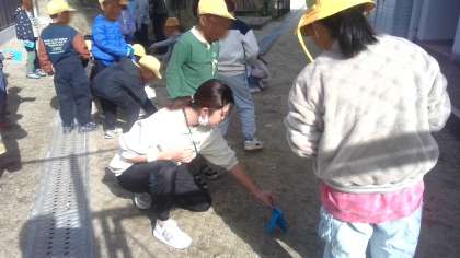 理科の学習です。光について考える学習で、太陽光を鏡を使って反射させたらどうなるかを実験していました。