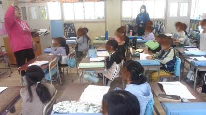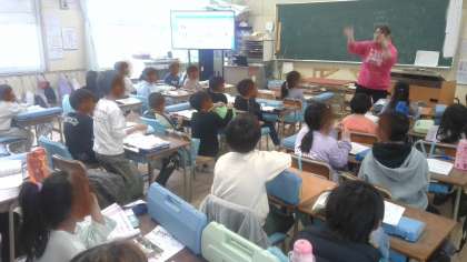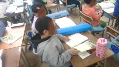 音楽の学習です。リズミカルな曲に合わせて輪唱を楽しんでいました。体でリズムをとって歌っている子もいました。
