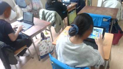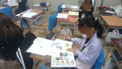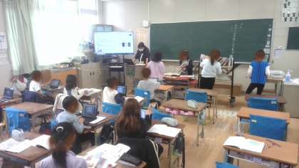 国語の学習で、「道具のひみつをつたえよう」の単元で、道具について調べてまとめ、それをみんなに伝える取り組みをしていました。まずは、自分が伝えたい道具を見つけ、ネットや本で調べて伝えたい内容をまとめていきます。