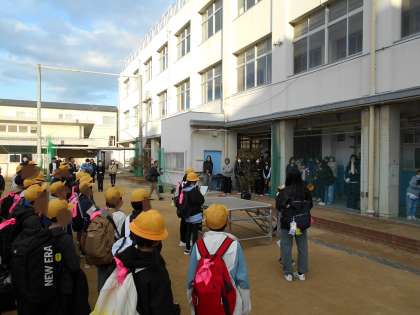 11月19日(水)です。6年生は、今日から1泊2日の予定で志摩、鳥羽方面に修学旅行に出かけます。朝の出発式では、お見送りのお家の方々に元気に行ってきますのあいさつをして出発しました。楽しく有意義な活動ができるよう頑張ってきます!